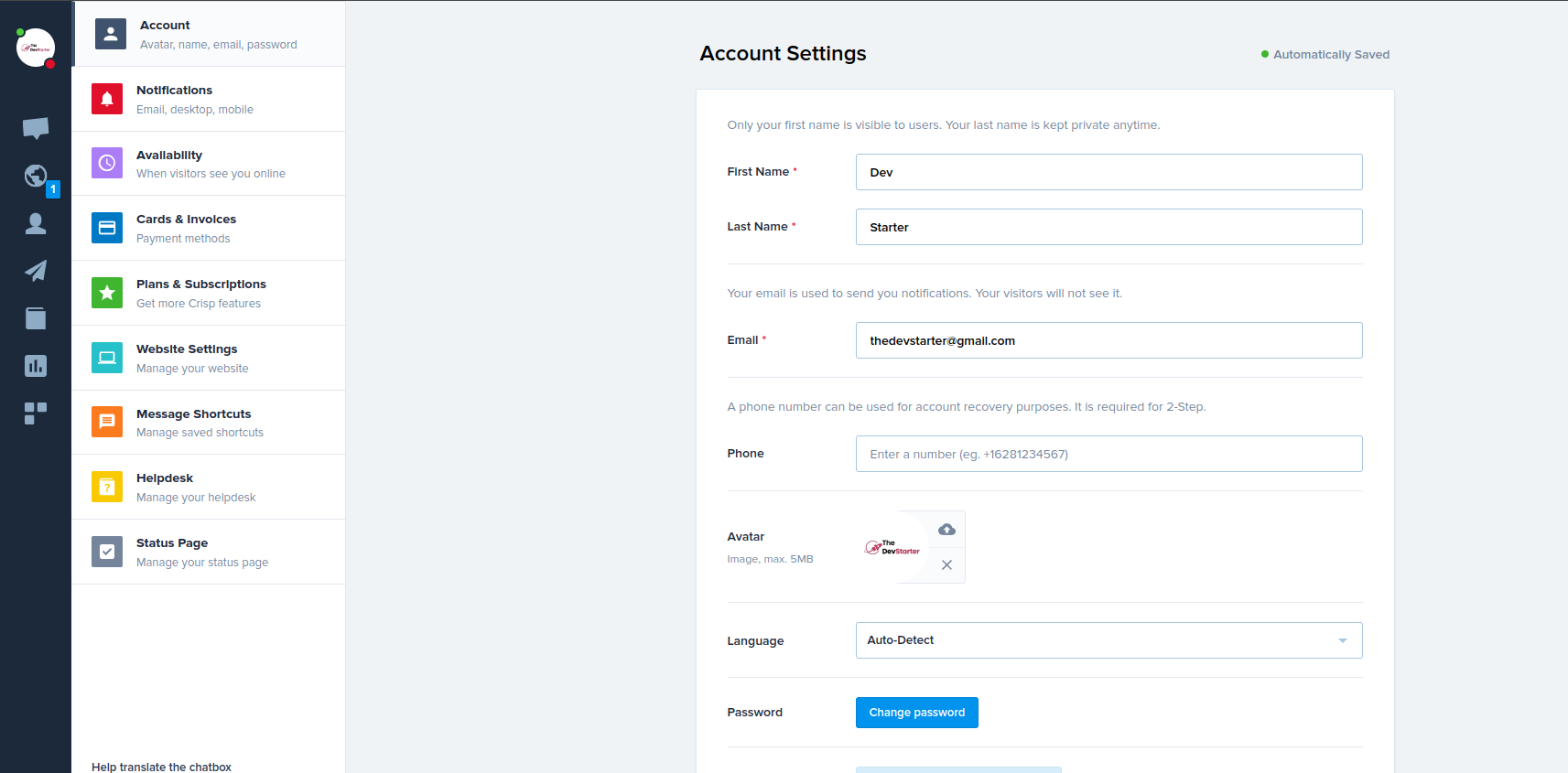 Crisp Chat comes inbuilt with the template so that you can focus on core business instead of worrying about peripherals