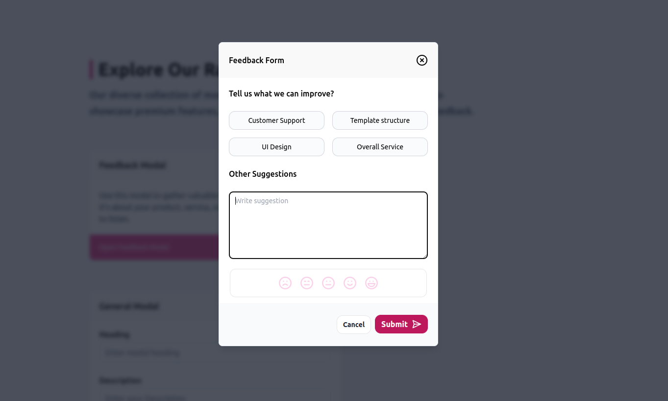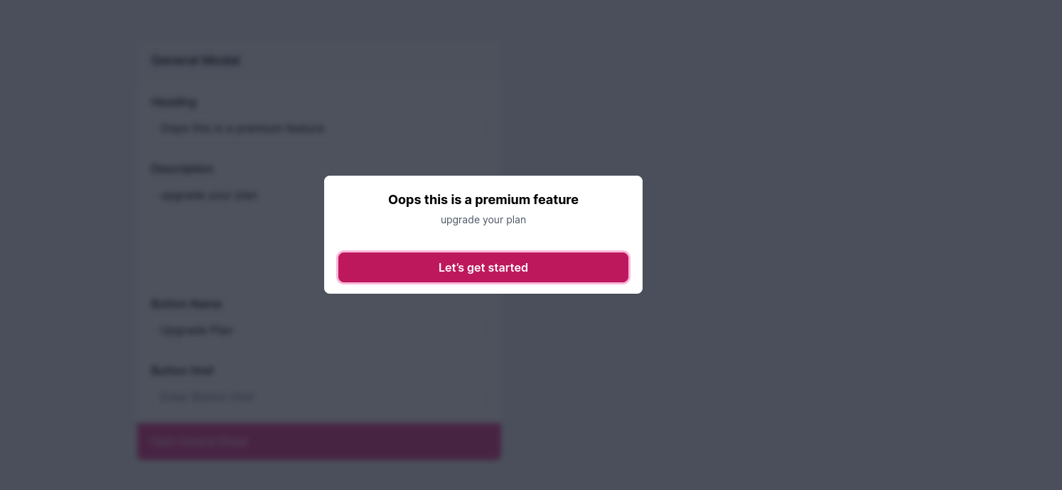 Trigger modals to target CTAs for premium features, warnings and notifications using inbuilt UI Modals.