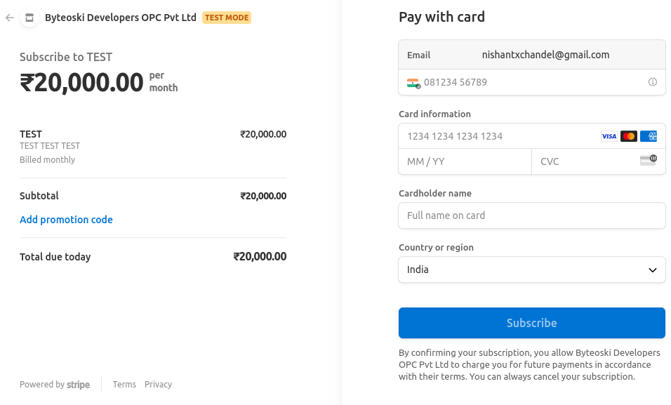 Boilerplate comes with a Stripe integration that can be used out of the box for subscriptions and one time sales.